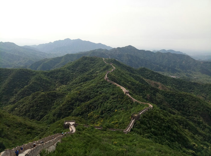 在20號烽火臺經(jīng)過短暫的休息后,大家順著原路開始返回,途中不時說說笑笑,不時與長城合影留念,不時給攀登的游人加油鼓勁,甚是輕松。
