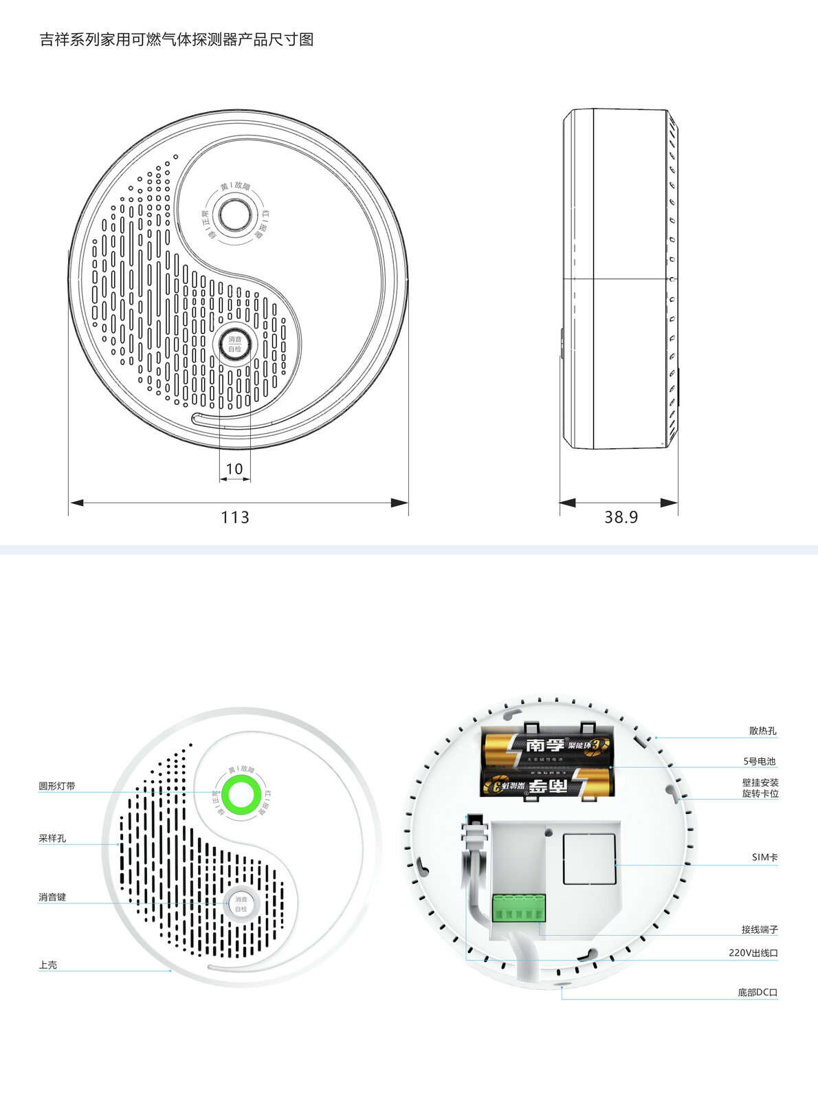 ☆  提供12V直流、220V交流、堿性干電池三種供電方式,適應不同家庭環(huán)境,無需依賴固定電源,安裝便捷。